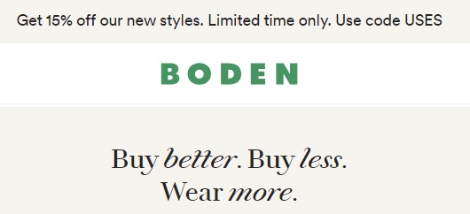 The best BODEN Coupon is the one that gives you both free shipping and a discount of at least 15% off.
