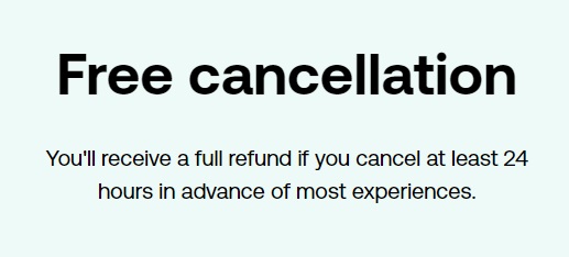 Did you change your mind? Do you want to make any changes on your booking order free of charge? Do you want to cancel the entire activity tour? You can cancel your booking up to 24 hours before your departure date at no additional costs and you will get a full refund. If you cancel your booking less than 24 hours before the activity is due to start, you will not receive your money back. Note that there are non-refundable activities and tours which means that if you cancel any of these, you will not get a refund. Moreover, there are some activities that can be cancel up to 7 full days before the start time or up to 4 full days before the start time.